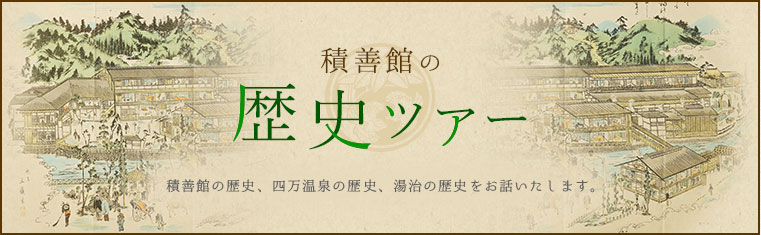 明治時代に⼊り、第15代の関善兵衛が中国の古い儒教の経典「易経」の中にある『積善(せきぜん)の家に余慶(よけい)あり』(善いことを積み重ねた家には、かならず良いことが起こる。)という⾔葉に関連させて、呼び名の「せきぜん」を『積善』と表わし、その下に旅館を表す『館』を付けて、『積善館』という名前にしました。
